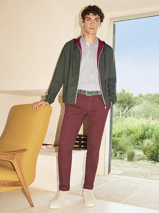 Finally, the accessories and footwear favor the lifestyle of a man seeking comfort and adventure with practical travel bags, sneakers, and suede moccasins, on the horizon for next summer.