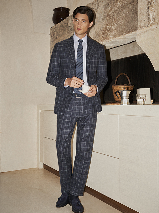 The Canali Spring Summer 2021 collection heralds a journey of self-discovery through the men’s wardrobe, in an adventure guided by the imagination. Apparel becomes the identifying and characterising element of an escape from everyday life, in which the outside world and one’s own intimate dimension are explored with new eyes. Thus, on a normal day marked by metropolitan routine, the mind leaps towards a suspended and alluring place, where three different and complementary facets of the modern man take shape: refined, adventurous and exclusive.