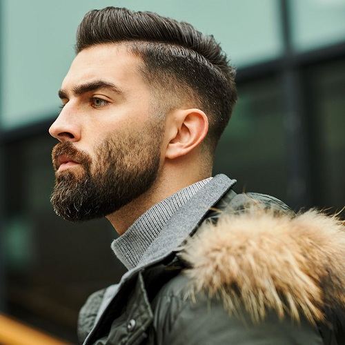 weatherproof bomber jacket coupled with a patterned T-shirt allows for urban
