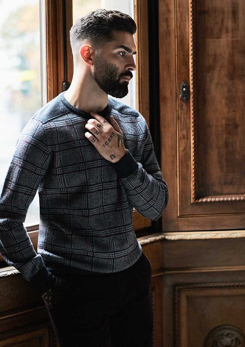 wool-cashmere sweaters and luxury sneakers cater to his globetrotter mentality,